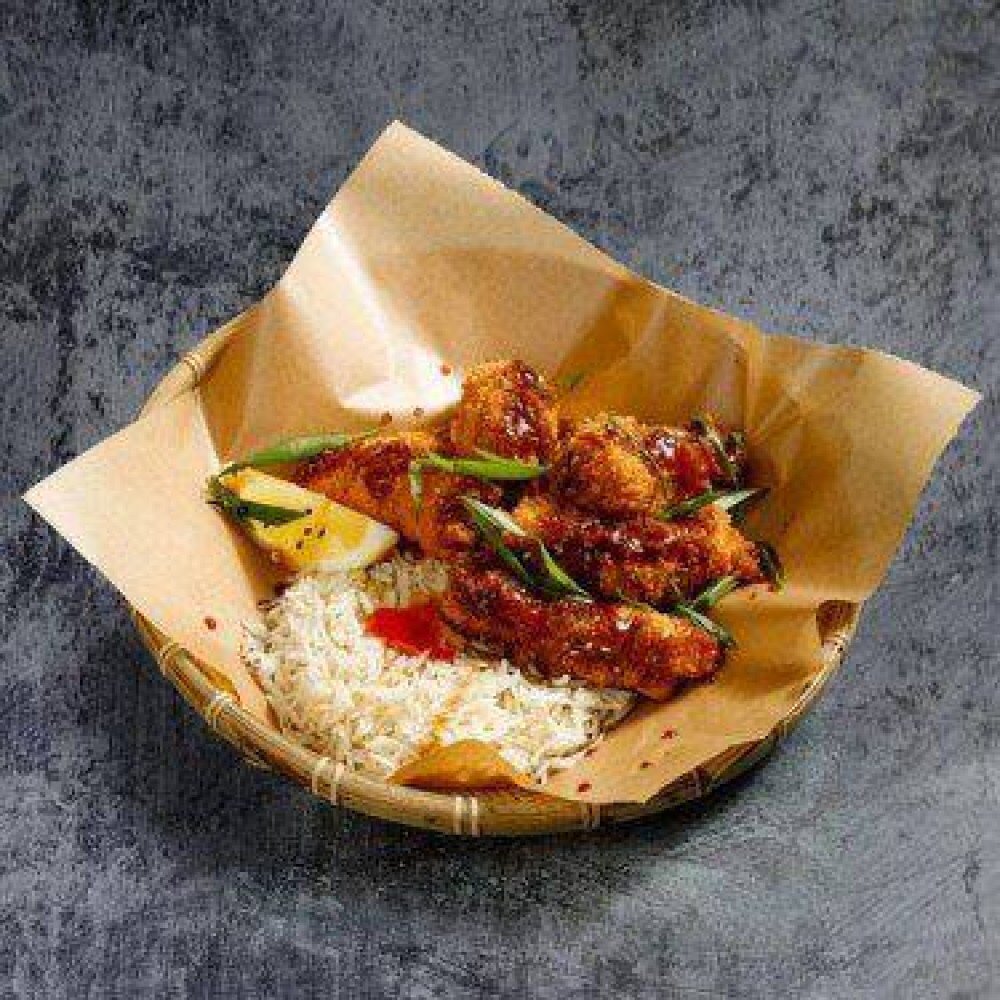 Креветки в фирменной панировке в тайском стиле с рисом500г