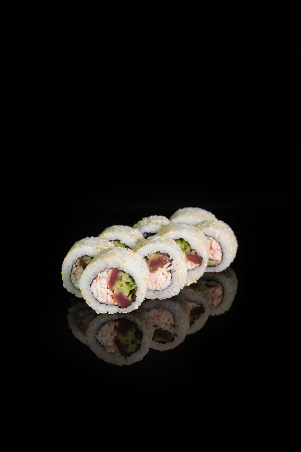 спайси соус, краб сурими, огурец ,тунец, белый кунжут257 гр.