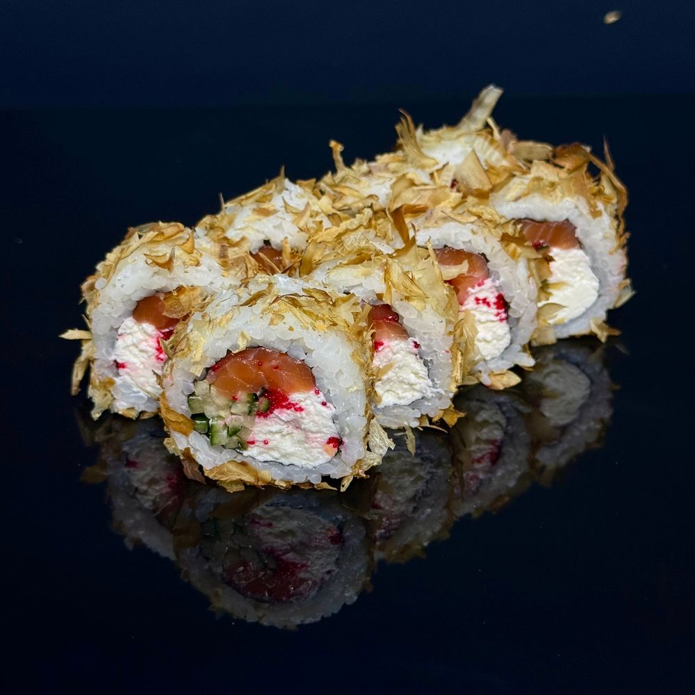 сыр сливочный, огурец, лосось, икра масаго, лосось, стружка тунца250 гр.