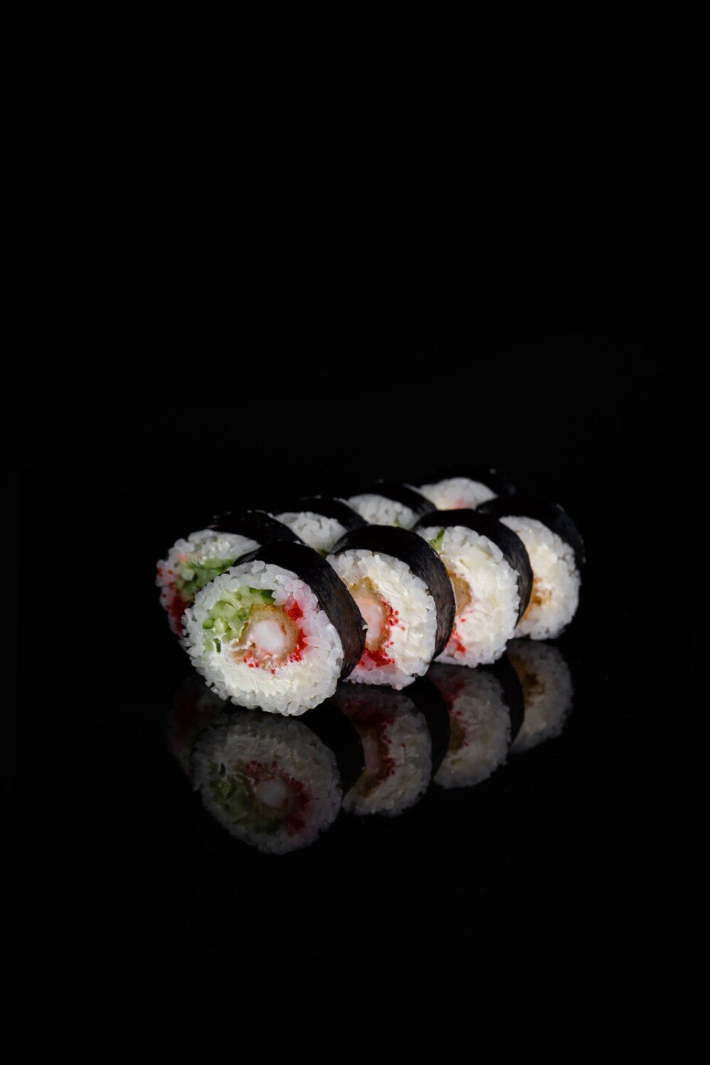 сыр сливочный, огурец, икра масаго, креветка темпура255 гр.