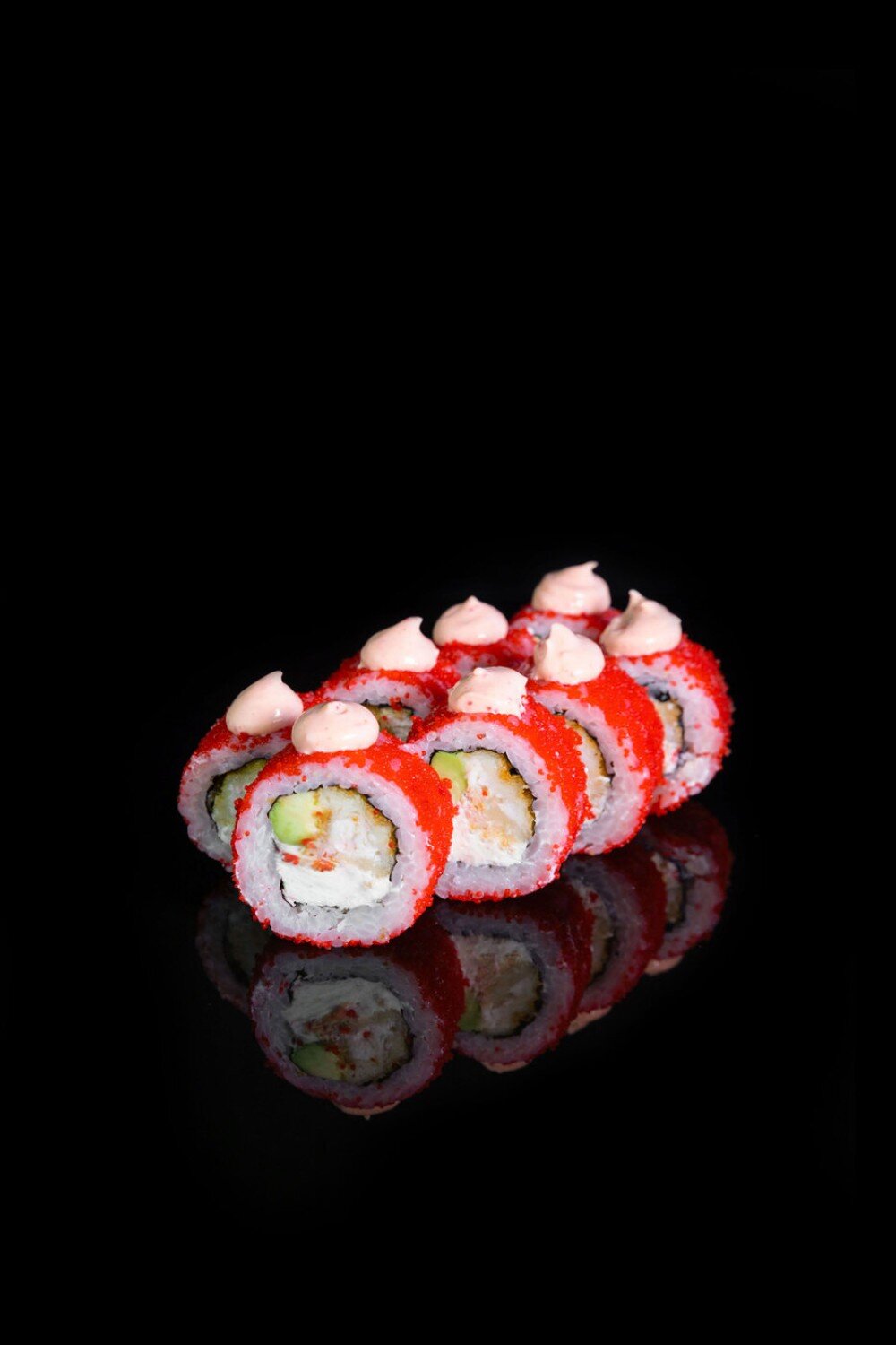 сыр сливочный,авокадо,окунь фурай,икра масаго,спайси соус 280 гр.