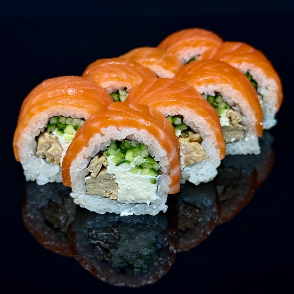 сыр сливочный, огурец, японский омлет, лосось290 гр.