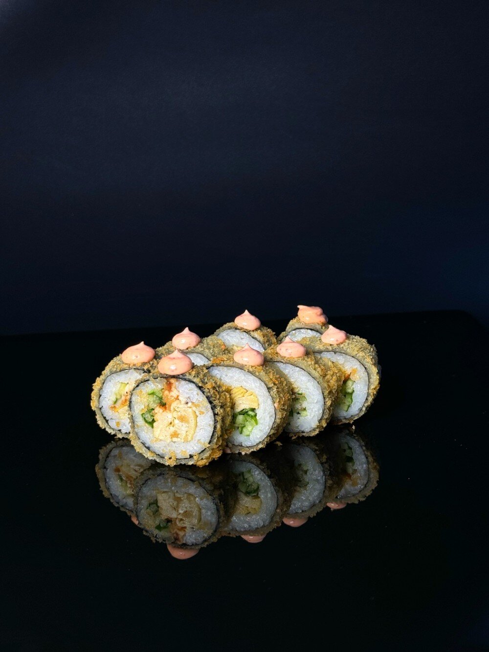 огурец, японский омлет, угорь, спайси соус, сухари панко, кляр