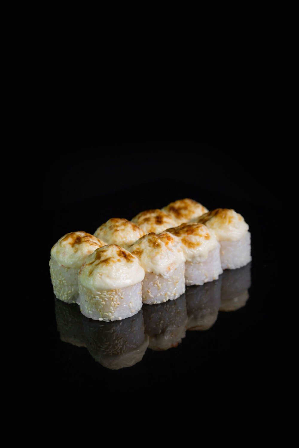сыр сливочный, огурец, окунь фурай, кунжут белый, соус для запекания с креветкой