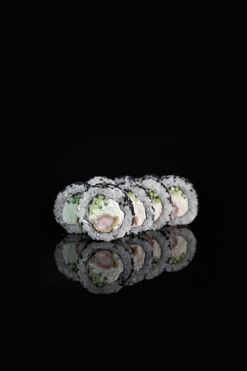 сыр сливочный, огурец, креветка темпура, черный кунжут252 гр.